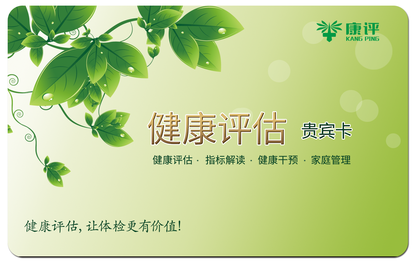 健康評估貴賓卡:可為您提供高血壓、腦卒中、非酒精性脂肪肝、糖尿病、冠心病、代謝綜合征、心血管病、高尿酸血癥、 慢性腎病、房顫、心衰、老年癡呆等,十幾種疾病未來5-10的健康風險評估及個性化的健康干預指南服務。
